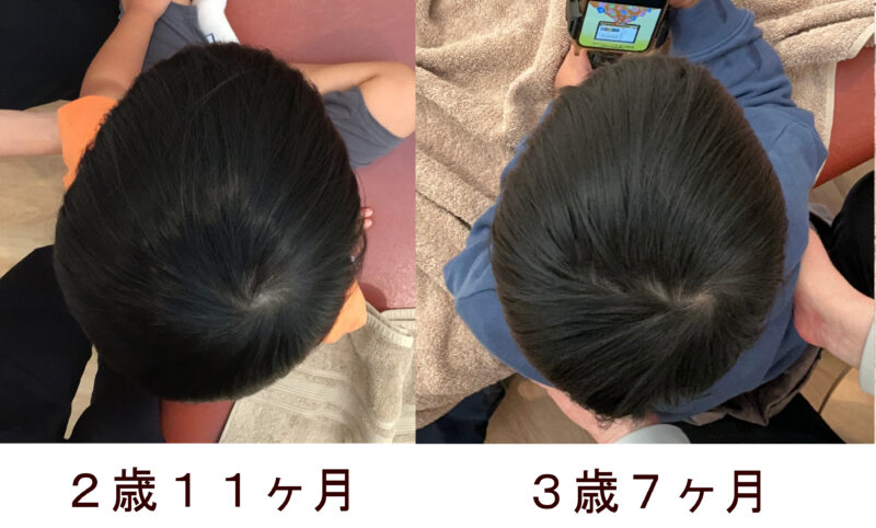 2歳11ヶ月の斜頭症|自然に治らなかった頭の歪みが変化した症例